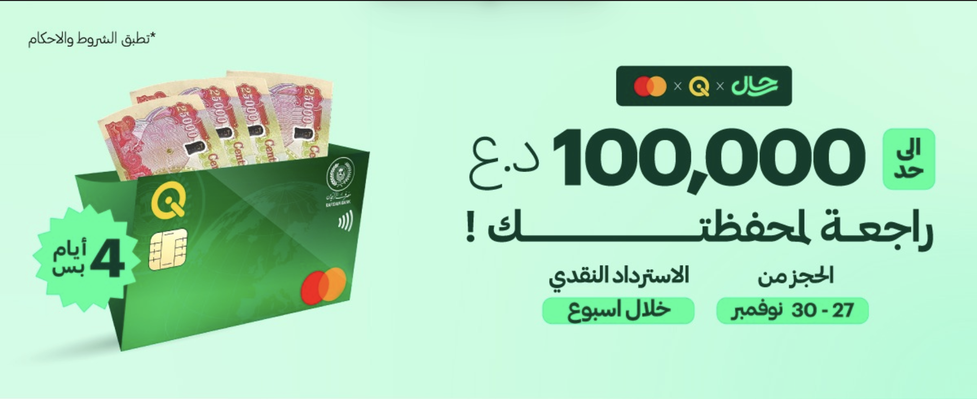 حجز سفرتك الدولية ببطاقة كي ماستركارد، وإحنا نرجّعلك ١٠٠,٠٠٠ دينار بمحفظة سوبر كي